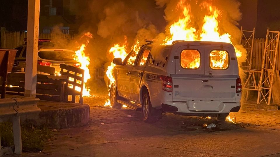 Informações preliminares indicam que pessoas teriam invadido o local e ateado fogo nas viaturas, o que levanta suspeita de ação criminosa.