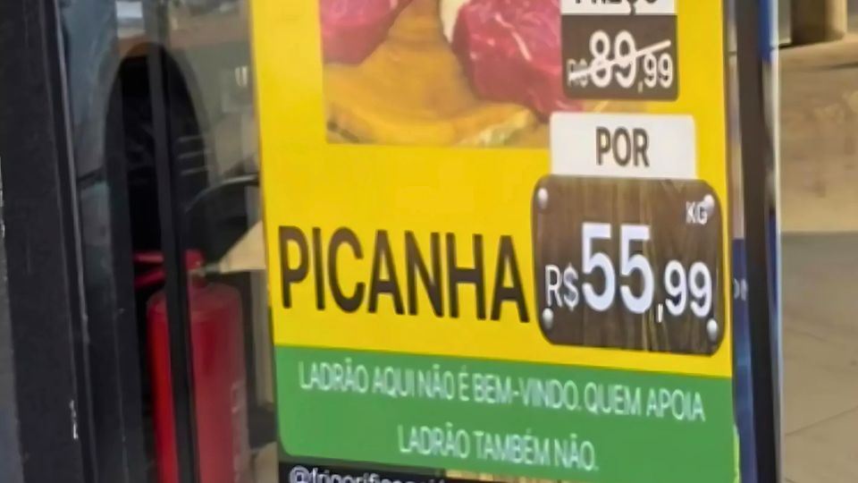Um dia depois de a Justiça determinar que um frigorífico de Goiás retire um anúncio contra petistas, o estabelecimento pregou outro cartaz na porta. O que antes era “petista aqui não é bem-vindo” virou “ladrão aqui não é bem-vindo. Quem apoia ladrão também não”. A defesa afirma que o novo cartaz não tem qualquer vinculação política ou discriminatória.